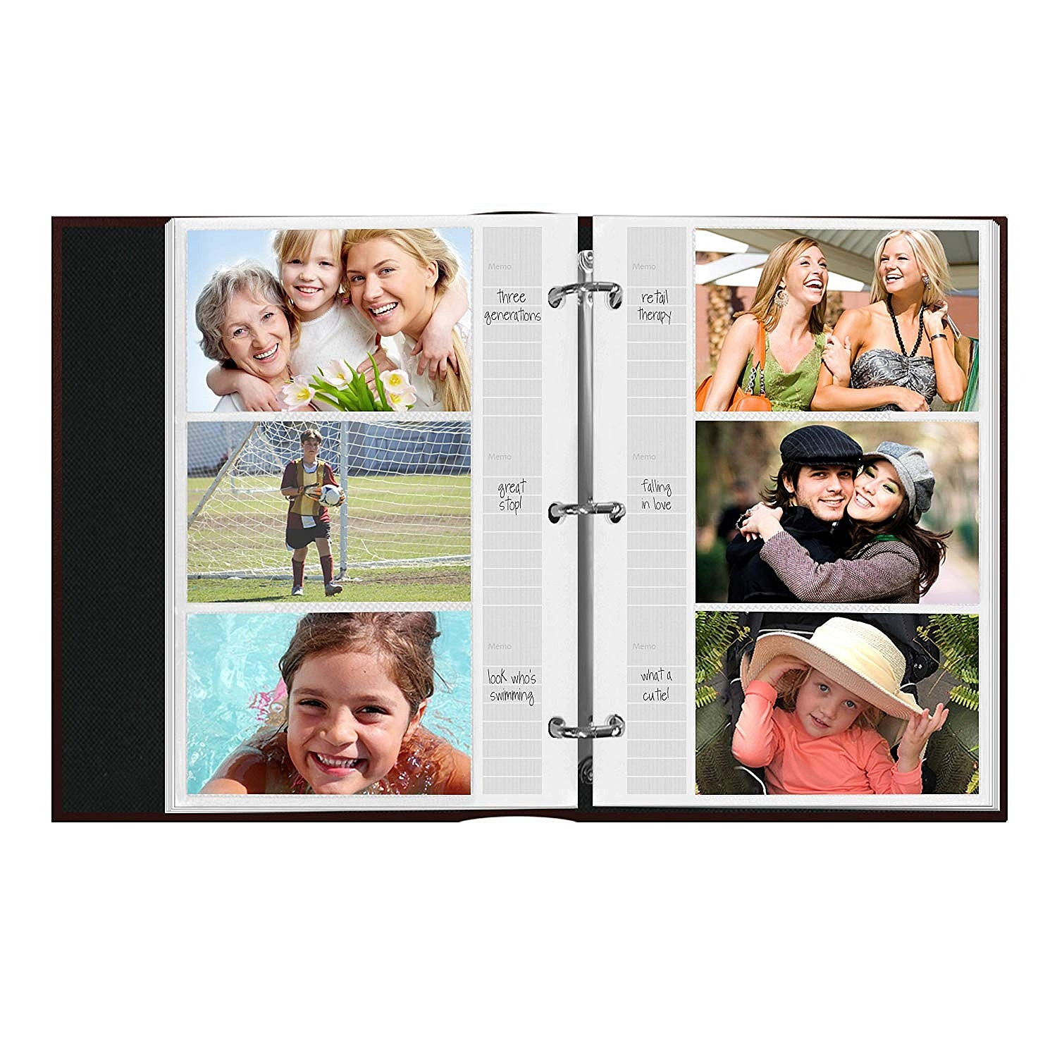 Main view Product Details Pioneer Albums® 3-Ring / 3UP Black Leather BI-DIRECTIONAL memo pocket album for 204+ photos — One of the most versatile albums ever invented for event and family personal photos, the BI-DIRECTIONAL series features pages that can display photos both horizontally and vertically up to 4x6, plus panoramics (up to 4x12). Now with refillable 3-ring binding! 204 initial photo capacity, 3-UP. Refillable Initially, ships with 34 pages for up to 204 horizontal 4x6 photos (or 136 vertical) Patented pockets hold horizontal or vertical prints up to 4" x 6", plus panoramics Optically clear pockets with shaded background enhance the look of your prints Micro static slip-in pockets protect and hold photos in-place Memo area next to each photo pocket Elegant bonded-leather book cover design with antique gold tooled accents and color coordinated "PHOTO ALBUM" emblem on spine 3-ring binder has 1¼" D-rings spaced 4¼" apart and accepts BTA Refill Pages (see ACCESSORIES) Maximum album capacity: Approximately 54 pages (324 photos) Overall album dimensions: 9-5/8" x 14" Pioneer photo albums are archival, acid free, photo safe Produced by the Pioneer® company. 3-Ring / 3UP Black Leather BI-DIRECTIONAL memo pocket album for 204+ photos Model #023602615007 List $24.50 You pay $20.95 In stock Can be shipped today [?] Your Price Match is Active Your request for a price of $0.00 for a minimum quantity of has been accepted. You have [time] left to purchase this item for $0.00 instead of $20.95 each. Find a Lower Price? We BEAT All Authorized Retailers [?] FEATURESDisplays:4"x6"Material:Leather (faux)Finish:BlackOccasion:Business & office, Celebrating Travels, Craft Projects, Group Events + Parties, Friendship, Housewarming, RetirementStyle:Classic, Traditional, SophisticatedOrientation:BothBrand:Pioneer Albums®Display Type:not applicable n/a Approx. Overall Dimensions:9 3/4"x14 3/4"x2 1/2" SHARE THIS ITEM Share on Facebook
