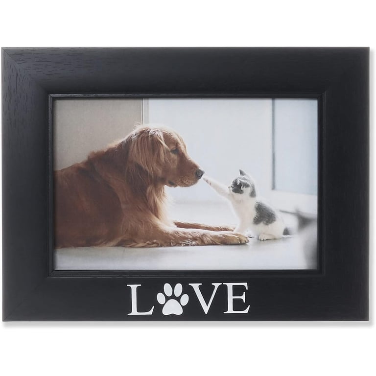 Main view Product Details Lawrence Frames® LOVE and PAW PRINT 6x4 Black frame — Black mdf wood frame with debossed LOVE PAW print. Glare resistant glass lens. Frame comes with an easy loading black easel back which stands horizontally. Individually boxed. Super gift for a dog or cat person! By Lawrence®. LOVE and PAW PRINT 6x4 Black frame Model #751148085977 List $21.00 You pay $14.95 This item is currently out of stock and we do not have an expected date at the present time. click here to be automatically notified when it comes back in stock or email merchandising@sendaframe.com for availability information. You can place this item in your shopping cart. It will be added to the 'saved for later' section. Your Price Match is Active Your request for a price of $0.00 for a minimum quantity of has been accepted. You have [time] left to purchase this item for $0.00 instead of $14.95 each. Find a Lower Price? We BEAT All Authorized Retailers [?] FEATURESDisplays:4"x6"Material:Wood (mdf/engineered)Finish:BlackOccasion:Christmas, Friendship, Weekend Host Gifts, Pet LoveStyle:Animals & pets, Words & whimsy, Sentiments | ready madeOrientation:Horizontal OnlyBrand:Lawrence Frames®Display Type:Desktop or Wall Approx. Overall Dimensions:7 11/16"x5 11/16"x3/4" This item ships in its own box SHARE THIS ITEM Share on Facebook