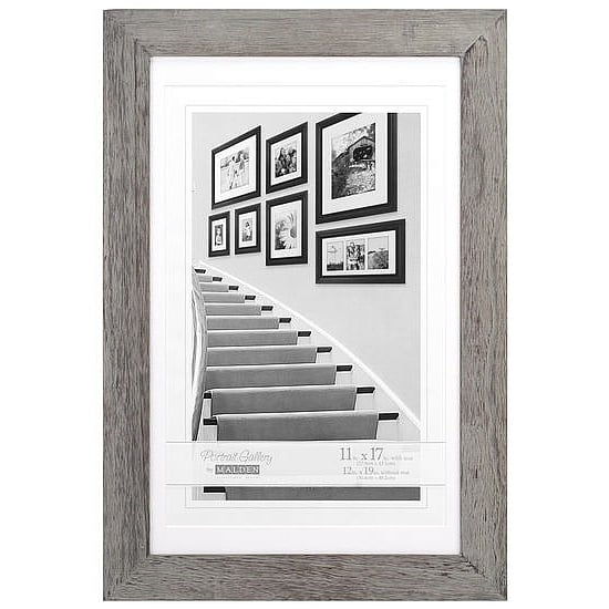 Main view Product Details Malden Designs® Gray MANHATTAN matted 12x19/11x17 frame — Malden's gray stained wood MANHATTAN style is a flat-top, square cornered silhouette. Displays a 12"x19" print without mat; an 11"x17" print with its soft white mat.Soft white, professional cut mat. Use the include mounts for easy wall hanging.Acid free backing for life-time care of your photo.By Malden Design®. Gray MANHATTAN matted 12x19/11x17 frame Model #096287150613 List $35.00 You pay $29.95 In stock Can be shipped today [?] Your Price Match is Active Your request for a price of $0.00 for a minimum quantity of has been accepted. You have [time] left to purchase this item for $0.00 instead of $29.95 each. Find a Lower Price? We BEAT All Authorized Retailers [?] FEATURESDisplays:11"x17"Material:Wood (mdf/engineered)Finish:Gray/CharcoalOccasion:Business & office, Home decorating, Team & coach gifts, Thank-Motivate-Reward, Celebrating TravelsStyle:Architectural, Contemporary, Sophisticated, TraditionalBrand:Malden Designs®Display Type:Wall Only This item ships in its own box SHARE THIS ITEM Share on Facebook