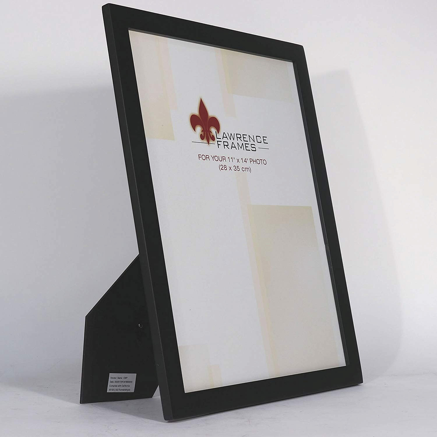 Back to results Scroll Items 11031 of 11031 Family Members 4"x6" - Black $13.95 5"x7" - Black $19.95 8"x10" - Black $21.95 8"x12" - Black $22.95 This item is currently out of stock and we do not have an expected date at the present time. click here to be automatically notified when it comes back in stock or email merchandising@sendaframe.com for availability information. You can place this item in your shopping cart. It will be added to the 'saved for later' section. Main view Product Details Lawrence Frames® Black Gallery 11x14 frame by Lawrence Frames® — Contemporary ebony-black wood picture frame. High quality black wood backing with an easel for vertical or horizontal table top display, and hangers for vertical or horizontal wall mounting. Contemporary wood frame that will compliment any décor Constructed of wood; includes high quality black wood backing Simple design walnut studio moulding is great as a gallery frame Moulding edge is 13/16" Wipe clean with dry cloth, glass included By Lawrence Frames® Black Gallery 11x14 frame by Lawrence Frames® Model #751148041355 List $33.00 You pay $27.95 This item is currently out of stock and we do not have an expected date at the present time. click here to be automatically notified when it comes back in stock or email merchandising@sendaframe.com for availability information. You can place this item in your shopping cart. It will be added to the 'saved for later' section. Your Price Match is Active Your request for a price of $0.00 for a minimum quantity of has been accepted. You have [time] left to purchase this item for $0.00 instead of $27.95 each. Find a Lower Price? We BEAT All Authorized Retailers [?] FEATURESDisplays:11"x14"Material:Wood (full grain)Finish:BlackOccasion:Business & office, Congratulations, Home decoratingStyle:Classic, Contemporary, Minimal, TraditionalOrientation:BothBrand:Lawrence Frames®Display Type:Desktop or Wall Approx. Overall Dimensions:12 1/4"x15 1/4"x3/4" This item ships in its own box SHARE THIS ITEM Share on Facebook