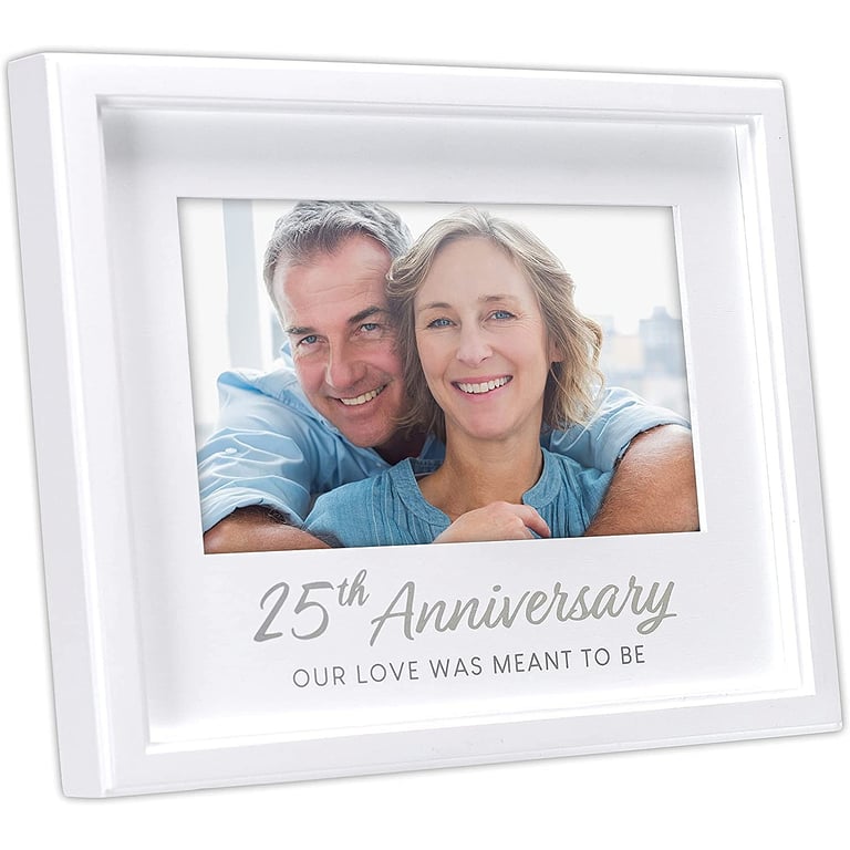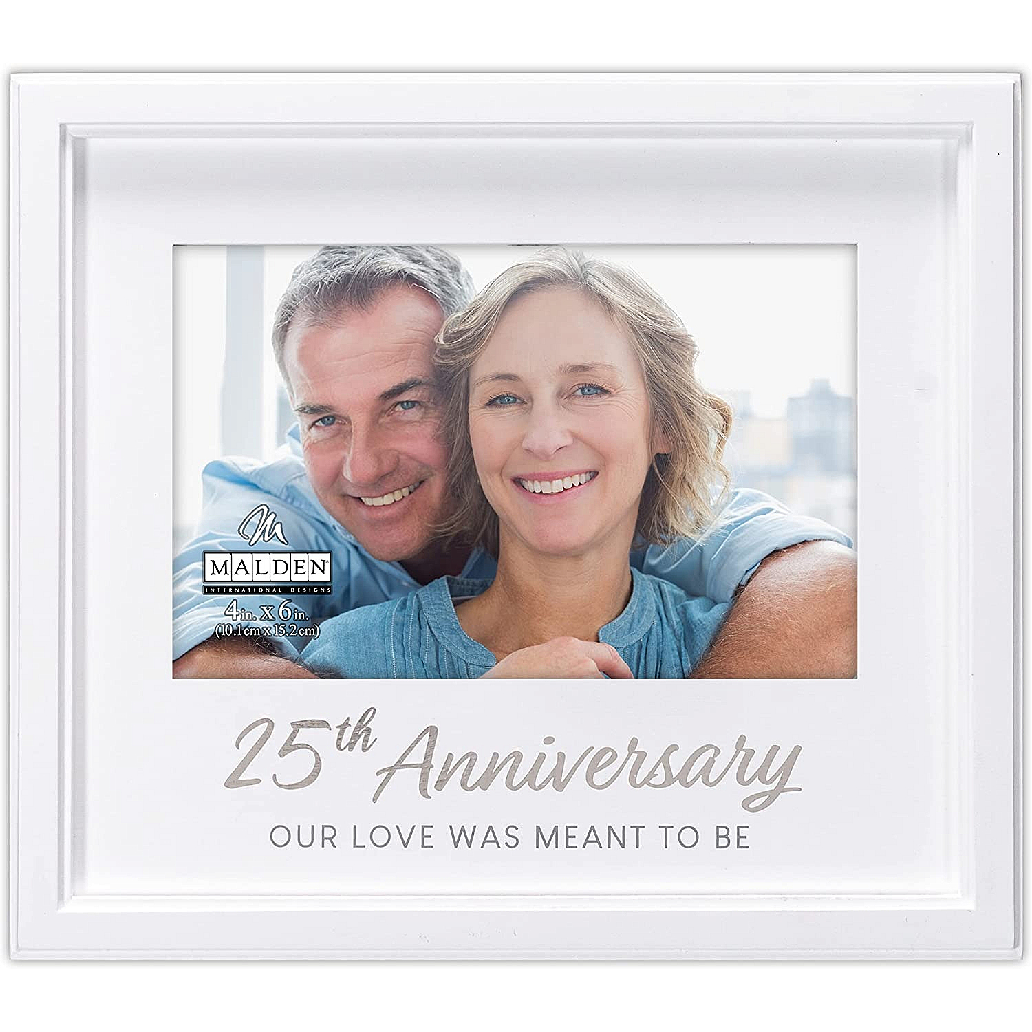 Back to results Scroll Items 3101 of 11075 Main view Product Details Malden Designs® Celebrate a 25th Anniversary with this special frame — This attractive frame celebrates an enduring love. 25th Anniversary Our love was meant to beTwo-tone detail of silver on a silvery base enhances the beauty of this 25th Anniversary gift.As always, you can add your favorite digital picture to your CART and we can print & mount it in your gift for you.Hardboard easel back for tabletop display. Quality glare resistant glass lens.By Malden®, the frame people. Celebrate a 25th Anniversary with this special frame Model #096287183451 List $16.00 You pay $11.95 In stock Ships next business day [?] Your Price Match is Active Your request for a price of $0.00 for a minimum quantity of has been accepted. You have [time] left to purchase this item for $0.00 instead of $11.95 each. Find a Lower Price? We BEAT All Authorized Retailers [?] FEATURESDisplays:4"x6"Material:Wood (mdf/engineered)Finish:SilverOccasion:AnniversaryStyle:Classic, Contemporary, Traditional, Words & whimsy, Sentiments | ready madeOrientation:Horizontal OnlyBrand:Malden Designs®Display Type:Desktop or Wall This item ships in its own box SHARE THIS ITEM Share on Facebook