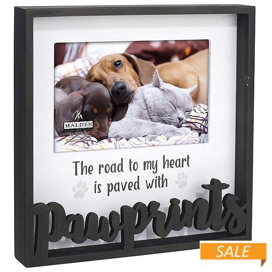 Product Details Malden Designs® PAWPRINTS LASERBOX 6x4 frame Black — The Road To My Heart Is Paved With PAWPRINTS Displays a 6"x4" print with white mat. Lasercut applique. Glare resistant glass lens. Produced by Malden Design®. PAWPRINTS LASERBOX 6x4 frame Black Model #096287159302 List $19.50 You pay $9.90 This item IS in stock and can be expected to ship 01/29/2026 In stock Your Price Match is Active Your request for a price of $0.00 for a minimum quantity of has been accepted. You have [time] left to purchase this item for $0.00 instead of $9.90 each. Find a Lower Price? We BEAT All Authorized Retailers [?] FEATURESDisplays:4"x6"Material:Wood (mdf/engineered)Finish:BlackOccasion:Birthday, Inspirational, Weekend Host Gifts, Pet LoveStyle:Animals & pets, Words & whimsy, Sentiments | ready madeOrientation:Horizontal OnlyBrand:Malden Designs®Display Type:Desktop or Wall Approx. Overall Dimensions:8"x8"x1" This item ships in its own box SHARE THIS ITEM Share on Facebook