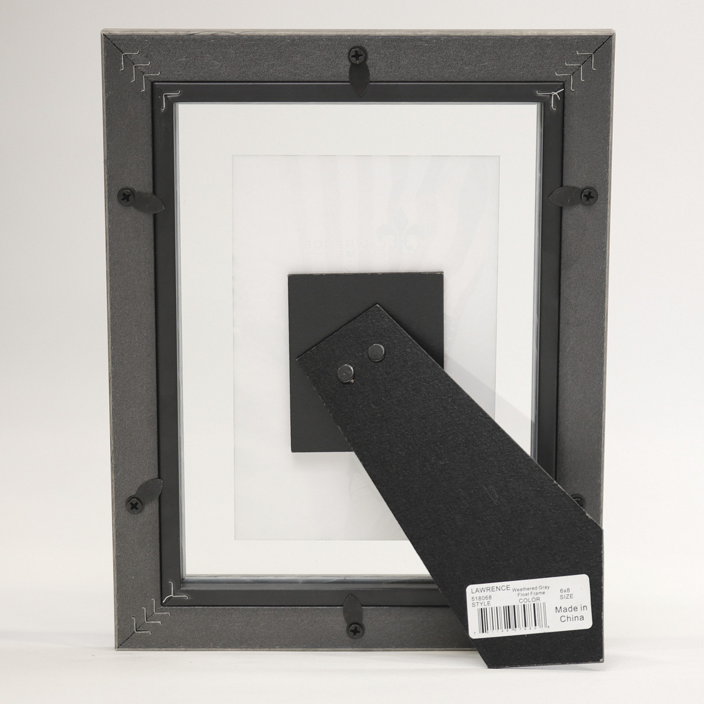 Main view Product Details Lawrence Frames® ARDEN WEATHERED FLOAT 6x8/5x7 frame — Show-off your print with this BARNWOOD FLOAT composite float frame.Double glass lenses sandwich your print or photo and show the wall behind the print (so the paper appears to "float").Opening is 6"x8" and appears to "float" any size print that is smaller.Crafted by Lawrence®. ARDEN WEATHERED FLOAT 6x8/5x7 frame Model #751148079808 List $14.50 You pay $6.90 In stock Can be shipped today [?] Your Price Match is Active Your request for a price of $0.00 for a minimum quantity of has been accepted. You have [time] left to purchase this item for $0.00 instead of $6.90 each. Find a Lower Price? We BEAT All Authorized Retailers [?] FEATURESDisplays:5"x7"Material:Wood (mdf/engineered)Finish:Gray/CharcoalOccasion:Business & office, Home decorating, Housewarming, Thank-Motivate-Reward, Celebrating TravelsStyle:Contemporary, Distressed - Weathered, Double-sided, Float Frames, Rustic/LodgeOrientation:BothBrand:Lawrence Frames®Display Type:Tabletop (or wall w/optional hanger - available separately) Approx. Overall Dimensions:7 1/2"x9 1/2"x1/2" This item ships in its own box SHARE THIS ITEM Share on Facebook