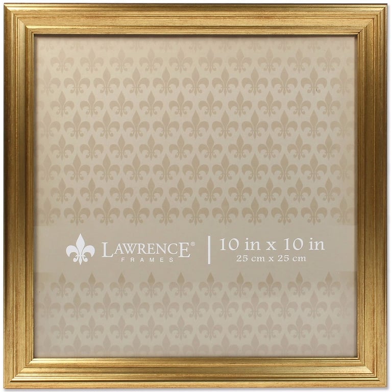 Main view Product Details Lawrence Frames® SUTTER Burnished Gold composite-wood 10x10 frame — High quality burnished gold composite picture frame. Comes with an easel for table top display, and hangers for easy wall mounting. High quality black velvet backing. Picture frame comes with glass to protect your photo, and is individually boxed. Decorative picture frame Black velvet backing Vertical or horizontal tabletop display or can be hung on a wall with installed hangers Wipe clean with dry cloth, glass included By Lawrence® SUTTER Burnished Gold composite-wood 10x10 frame Model #48069960 List $29.00 You pay $24.95 This item IS in stock and can be expected to ship 11/19/2025 Your Price Match is Active Your request for a price of $0.00 for a minimum quantity of has been accepted. You have [time] left to purchase this item for $0.00 instead of $24.95 each. Find a Lower Price? We BEAT All Authorized Retailers [?] FEATURESDisplays:10"x10"Material:Wood (mdf/engineered)Finish:GoldOccasion:Business & office, Congratulations, Corporate gifts, Home decorating, Mother`s Day, Teacher gifts, Team & coach gifts, Celebrating TravelsStyle:Classic, TraditionalBrand:Lawrence Frames®Display Type:Desktop or Wall Approx. Overall Dimensions:11 13/16"x11 13/16"x13/16" This item ships in its own box SHARE THIS ITEM Share on Facebook