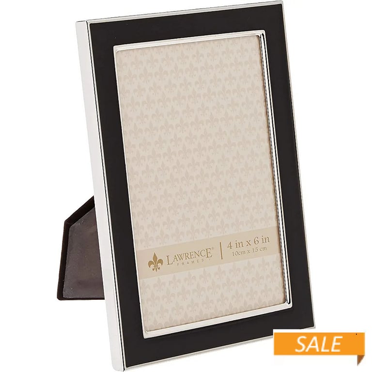 Main view Product Details Lawrence Frames® VERONA Black 4x6 Enamel & Silver accent — This beautiful black enamel frame is accented with silver on both inner and outer edges for a very contemporary look.Nicely backed; dual easel back for either landscape or portrait tabletop display.Moulding edge is a very contemporary 5/8" wide.From Lawrence®, maker of fine frames for generations. VERONA Black 4x6 Enamel & Silver accent Model #751148060523 List $27.50 You pay $11.90 In stock Can be shipped today [?] Your Price Match is Active Your request for a price of $0.00 for a minimum quantity of has been accepted. You have [time] left to purchase this item for $0.00 instead of $11.90 each. Find a Lower Price? We BEAT All Authorized Retailers [?] Approx. Overall Dimensions:4 3/4"x6 3/4" This item ships in its own box SHARE THIS ITEM Share on Facebook