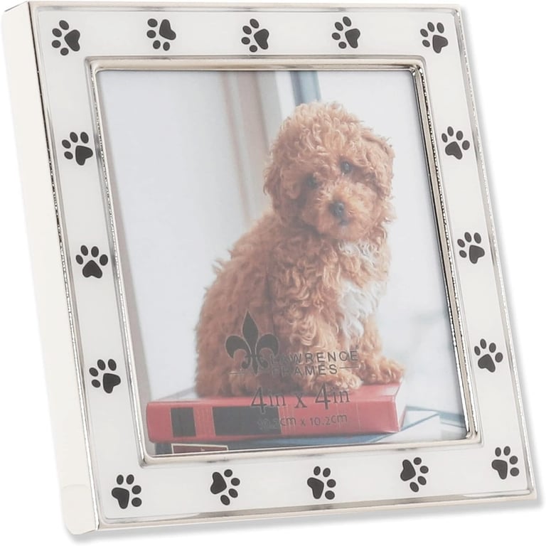 Main view Reverse Product Details Lawrence Frames® White Enamel and SILVER 4x4 Paw Print frame — White enamel on silver frame with black debossed adorable paw prints. Glare resistant glass lens. Frame comes with an easy loading black easel back which stands horizontally. Individually boxed. Produced by Lawrence®. White Enamel and SILVER 4x4 Paw Print frame Model #751148085496 List $22.50 You pay $16.95 This item IS in stock and can be expected to ship 01/16/2026 Your Price Match is Active Your request for a price of $0.00 for a minimum quantity of has been accepted. You have [time] left to purchase this item for $0.00 instead of $16.95 each. Find a Lower Price? We BEAT All Authorized Retailers [?] FEATURESDisplays:4"x4"Material:EnamelFinish:Silver, WhiteOccasion:Christmas, Friendship, Pet LoveStyle:Animals & pets, Words & whimsy, Sentiments | ready madeBrand:Lawrence Frames®Display Type:Desktop or Wall This item ships in its own box SHARE THIS ITEM Share on Facebook