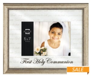 Product Details Prinz® frames & albums SACRED MOMENT special FIRST HOLY COMMUNION frame by Prinz — Celebrate your communion with our 7" x 5" Prinz® matted picture frame. The front of this frame reads First Holy Communion Features printed beveled mat velvet back one-way back easel for table-top display wall-hangers included Produced by Prinz® maker of fine albums for generations. SACRED MOMENT special FIRST HOLY COMMUNION frame by Prinz Model #086981756464 List $18.00 You pay $8.90 In stock Ships next business day [?] Your Price Match is Active Your request for a price of $0.00 for a minimum quantity of has been accepted. You have [time] left to purchase this item for $0.00 instead of $8.90 each. Find a Lower Price? We BEAT All Authorized Retailers [?] FEATURESDisplays:7"x5"Material:Wood (full grain)Occasion:Communion, InspirationalStyle:Classic, Contemporary, Sophisticated, Words & whimsy, Sentiments | ready madeOrientation:Horizontal OnlyBrand:Prinz® frames & albumsDisplay Type:Desktop or Wall This item ships in its own box SHARE THIS ITEM Share on Facebook