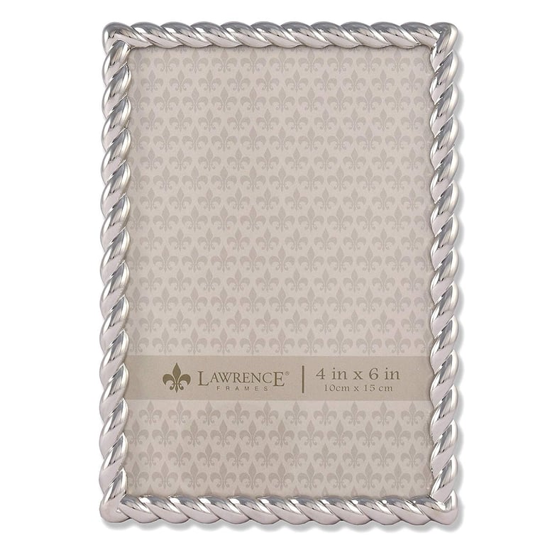 Main view Product Details Lawrence Frames® Silverplate ROPE BORDER 4x6 frame — Our brushed silver plate frame is nicely crafted with a beautiful rope trim.Attractively backed for wonderful desk appeal.Dual easel back for portrait or landscape tabletop display. Glare resistant glass lens. By Lawrence®. Silverplate ROPE BORDER 4x6 frame Model #751148066143 List $26.50 You pay $19.95 In stock Can be shipped today [?] Your Price Match is Active Your request for a price of $0.00 for a minimum quantity of has been accepted. You have [time] left to purchase this item for $0.00 instead of $19.95 each. Find a Lower Price? We BEAT All Authorized Retailers [?] This item ships in its own box SHARE THIS ITEM Share on Facebook