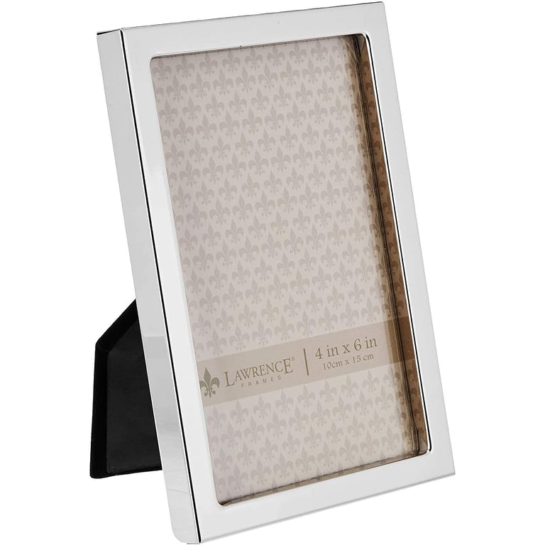 Main view Product Details Lawrence Frames® Silver-plate trim classic 4x6 frame — A simple and elegant heavy-weight silverplate frame, perfect for personalizing - or leave unadorned to showcase the photo.Moulding measures ½" wide.The attractive hardboard back features a dual easel for either portrait or landscape secure tabletop display. Wall mounts for easy hanging. Glare resistant glass lens.Crafted by Lawrence Frames®. Silver-plate trim classic 4x6 frame Model #751148066327 List $22.50 You pay $16.95 In stock Ships next business day [?] Your Price Match is Active Your request for a price of $0.00 for a minimum quantity of has been accepted. You have [time] left to purchase this item for $0.00 instead of $16.95 each. Find a Lower Price? We BEAT All Authorized Retailers [?] FEATURESDisplays:4"x6"Material:SilverplateFinish:SilverOccasion:Anniversary, Birthday, Business & office, Corporate gifts, Employee honors, Grandparent`s Day, Mother`s Day, New baby, Teacher gifts, Wedding, Weekend Host GiftsStyle:Classic, Contemporary, Minimal, TraditionalOrientation:BothBrand:Lawrence Frames®Display Type:Desktop or Wall This item ships in its own box SHARE THIS ITEM Share on Facebook