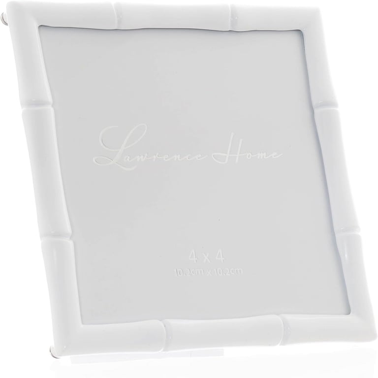 Main view Product Details Lawrence Frames® WHITE BAMBOO 4x4 by Lawrence® — WHITE enamel frame, nicely crafted with a classic bamboo style trim.Attractively velvet backed for wonderful desk appeal. Easel back for tabletop display. Wall mount for easy hanging. Glare resistant glass lens.By Lawrence®. WHITE BAMBOO 4x4 by Lawrence® Model #751148090643 List $24.00 You pay $18.95 This item IS in stock and can be expected to ship 01/20/2026 Your Price Match is Active Your request for a price of $0.00 for a minimum quantity of has been accepted. You have [time] left to purchase this item for $0.00 instead of $18.95 each. Find a Lower Price? We BEAT All Authorized Retailers [?] FEATURESDisplays:4"x4"Material:SilverplateFinish:WhiteOccasion:Anniversary, Birthday, Business & office, Corporate gifts, Engagement, Friendship, Good luck, Home decorating, Weekend Host Gifts, Housewarming, Mother`s Day, Retirement, Thank-Motivate-Reward, WeddingStyle:Asian Zen, Classic, TraditionalBrand:Lawrence Frames®Display Type:Desktop or Wall Approx. Overall Dimensions:4 13/16"x4 13/16"x11/16" This item ships in its own box SHARE THIS ITEM Share on Facebook