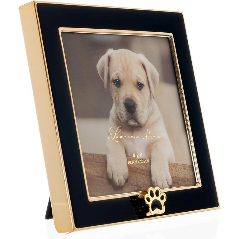 Main view Reverse Product Details Lawrence Frames® Black Enamel and Gold 4x4 Paw Print frame — Black enamel on gold frame with debossed adorable paw prints. Glare resistant glass lens. Frame comes with an easy loading channel black easel back. Individually boxed. Produced by Lawrence®. Black Enamel and Gold 4x4 Paw Print frame Model #751148092432 List $23.00 You pay $19.95 This item is currently out of stock and we do not have an expected date at the present time. click here to be automatically notified when it comes back in stock or email merchandising@sendaframe.com for availability information. You can place this item in your shopping cart. It will be added to the 'saved for later' section. Your Price Match is Active Your request for a price of $0.00 for a minimum quantity of has been accepted. You have [time] left to purchase this item for $0.00 instead of $19.95 each. Find a Lower Price? We BEAT All Authorized Retailers [?] FEATURESDisplays:4"x4"Material:SilverplateFinish:Black, GoldOccasion:Christmas, Friendship, Pet LoveStyle:Animals & pets, Words & whimsy, Sentiments | ready madeBrand:Lawrence Frames®Display Type:Desktop or Wall This item ships in its own box SHARE THIS ITEM Share on Facebook