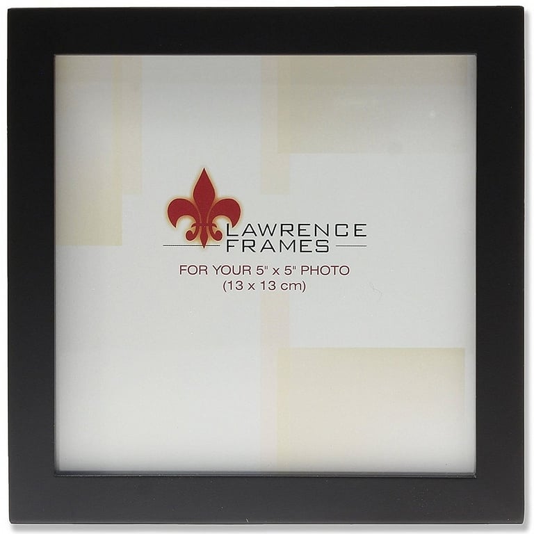 Main view Product Details Lawrence Frames® Square-corner / flat classic black 5x5 from Lawrence® — Lawrence's solid black ebony frame is elegant and an easy style to decorate with.Constructed of matched varnished hardwoods with tailed corners and exact fitting back. Frame edge is a very contemporary ½" all-around.Dual easel for landscape or portrait tabletop use; recessed wall mounting hooks included. Glare resistant glass lens.See Related Items on bottom right of this page for other colors and sizes of this piece. By Lawrence®. Click the Lawrence Frame collection to shop the entire line. Square-corner / flat classic black 5x5 from Lawrence® Model #751148055543 List $17.00 You pay $13.95 In stock Can be shipped today [?] Your Price Match is Active Your request for a price of $0.00 for a minimum quantity of has been accepted. You have [time] left to purchase this item for $0.00 instead of $13.95 each. Find a Lower Price? We BEAT All Authorized Retailers [?] FEATURESDisplays:5"x5"Material:Wood (full grain)Finish:BlackOccasion:Business & office, Congratulations, Craft Projects, Home decorating, Teacher gifts, Team & coach gifts, Thank-Motivate-RewardStyle:Classic, Architectural, MinimalBrand:Lawrence Frames®Display Type:Desktop or Wall This item ships in its own box SHARE THIS ITEM Share on Facebook