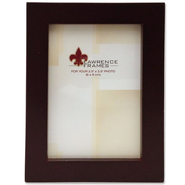 Main view Product Details Lawrence Frames® ESPRESSO square-corner 2x3 frame by Lawrence® — ESPRESSO brown frame is elegant and an easy style to decorate with.Constructed of matched varnished hardwoods with tailed corners and exact fitting back. Frame edge is a very contemporary ½" all-around.Dual easel for landscape or portrait tabletop use; wall mounting hooks included. Glare resistant glass lens.This is a classic style at a great price. Quality crafted by Lawrence Frames®. ESPRESSO square-corner 2x3 frame by Lawrence® Model #48064712 List $11.00 You pay $10.95 This item IS in stock and can be expected to ship 11/19/2025 Your Price Match is Active Your request for a price of $0.00 for a minimum quantity of has been accepted. You have [time] left to purchase this item for $0.00 instead of $10.95 each. Find a Lower Price? We BEAT All Authorized Retailers [?] FEATURESDisplays:2.50"x3.50"Material:Wood (full grain)Finish:BrownOccasion:Business & office, Congratulations, Craft Projects, Home decorating, Teacher gifts, Team & coach gifts, Thank-Motivate-RewardStyle:Architectural, Classic, Contemporary, Minimal, TraditionalOrientation:BothBrand:Lawrence Frames®Display Type:Desktop or Wall Approx. Overall Dimensions:3 1/8"x3 1/8"x11/16" This item ships in its own box SHARE THIS ITEM Share on Facebook