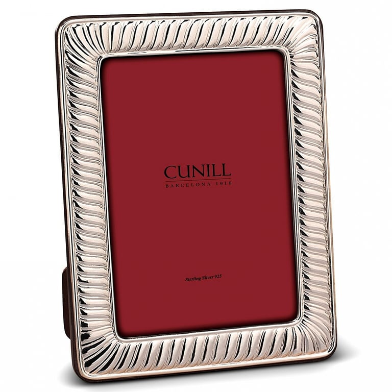Main view sample back Product Details Cunill® Italia SHELLS .925 fine sterling silver 4x6 frame by Cunill® — SHELLS is a classic style in fine sterling, and now added to the Cunill® line with their fabulous craftsmanship.Forged from a single sheet of fine sterling, SHELLS has a gorgeous fluted pattern moulding that shows off their great skill in sculpting metal.The Cunill quality is unsurpassed, even to the backing which is a fitted wood piece to easily lock-in your photos. (see Item views for more images). Note the signature sterling lozenge latch - a hallmark of Cunill since 1916. Each piece is debossed on front with the family mark and .925 (sterling silver), proudly giving signature to the quality this 100+ year old company has earned. ¾" width moulding. Cunill sterling never needs polishing - it is finely lacquered to keep it tarnish free. Beautifully gift packaged in the signature Cunill Barcelona® 2-piece red box.Crafted in - and imported from - Cunill Italy. SendAFrame carries the complete Cunill® frame collection for your shopping convenience. SHELLS .925 fine sterling silver 4x6 frame by Cunill® Model #783515000238 List $100.00 You pay $94.95 This item is currently out of stock and we do not have an expected date at the present time. click here to be automatically notified when it comes back in stock or email merchandising@sendaframe.com for availability information. You can place this item in your shopping cart. It will be added to the 'saved for later' section. Your Price Match is Active Your request for a price of $0.00 for a minimum quantity of has been accepted. You have [time] left to purchase this item for $0.00 instead of $94.95 each. Find a Lower Price? We BEAT All Authorized Retailers [?] FEATURESDisplays:4"x6"Material:Sterling Silver (fine)Finish:SilverOccasion:Anniversary, Bar & Bat Mitzvah, Business & office, Group Events + Parties, Good luck, Graduation, Housewarming, Retirement, Thank-Motivate-Reward, Wedding, BirthdayStyle:Contemporary, Sophisticated, Heirloom / HeritageOrientation:BothBrand:Cunill® ItaliaDisplay Type:Desktop Only This item ships in its own box SHARE THIS ITEM Share on Facebook