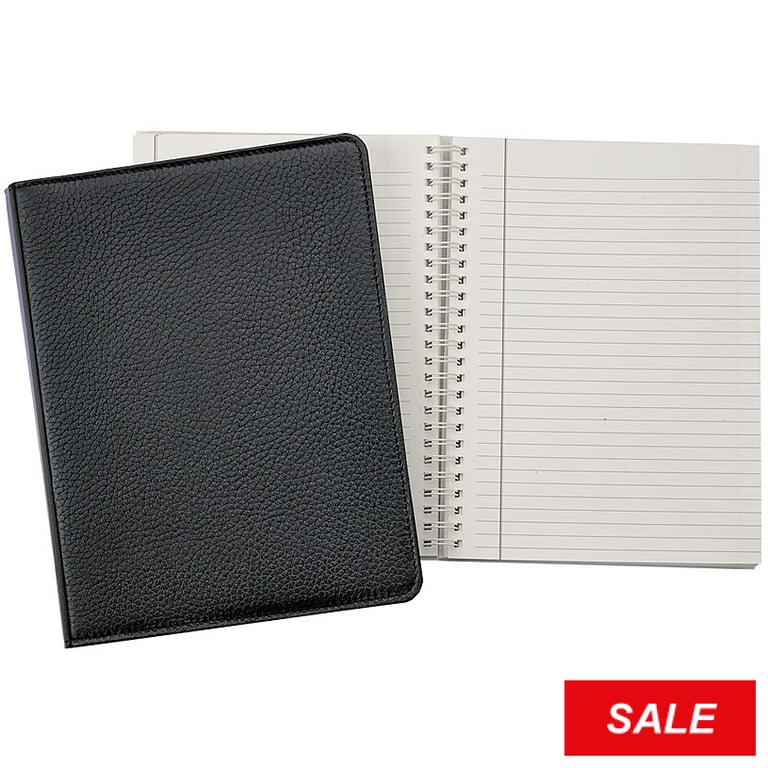 Back to results Scroll Items 10964 of 11008 Main view Storage Gift Box (w/holiday bow) Product Details Graphic Image® SPIRAL REFILLABLE JOURNAL 9-inch Black PEBBLE GRAIN Fine Leather by Graphic Image™ — The leather notebook that quickly becomes a writer's constant companion. This leather notebook includes a spiral insert with 144 lined perforated pages on gold-gilded premium paper. Handy for everyday note taking, business or journal writing. Genuine luxe full-grain leather for superior wear Size: 7x9¼" Available in many colors (see links below). Personalization is available in gold or blind stamping For additional refills, see ACCESSORIES below Graphic Image™ hand crafts genuine leather-bound books that have set the modern day standard for quality and design. SPIRAL REFILLABLE JOURNAL 9-inch Black PEBBLE GRAIN Fine Leather by Graphic Image™ Model #611959502059 List $148.00 You pay $129.95 This item IS in stock and can be expected to ship 01/30/2026 In stock Your Price Match is Active Your request for a price of $0.00 for a minimum quantity of has been accepted. You have [time] left to purchase this item for $0.00 instead of $129.95 each. Find a Lower Price? We BEAT All Authorized Retailers [?] FEATURESDisplays:7"x9"Material:Leather (fine)Finish:BlackOccasion:Business & office, Corporate gifts, Employee honors, Good luck, Graduation, Inspirational, Thank-Motivate-Reward, Back to SchoolStyle:Classic, Preppy, Traditional, ContemporaryBrand:Graphic Image®Display Type:not applicable n/a Approx. Overall Dimensions:7"x9 1/4" This item ships in its own box SHARE THIS ITEM Share on Facebook