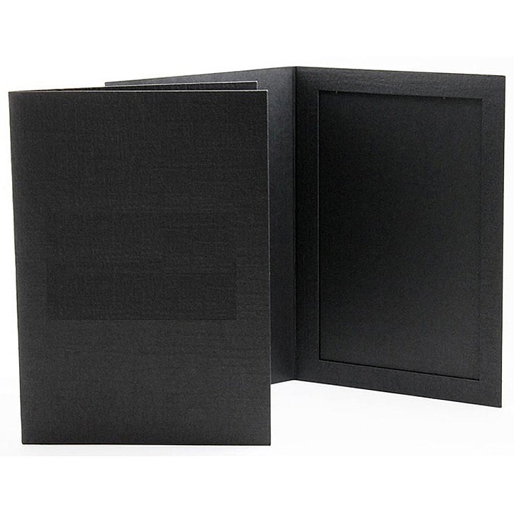 Back to results Scroll Items 8 of 11256 Family Members 4"x6" - (vert) TRIM Black w/plain border $0.95 5"x7" - (vert) TRIM Black w/plain border $1.09 4"x6" - (vert) TRIM Black w/plain border $0.95 5"x7" - (vert) TRIM Black w/plain border $1.09 Main view TRIM LINE (top) vs DECKLED versions -sample- -sample- Product Details Collectors Gallery Cardboard Photomount Folder Single 8x10 TRIM Black w/plain border (sold in 25s) — The TRIM LINE black event folders are an upscale solution for presenting studio or event photos. Heavy paper portrait folders protect your photos from dust and fingerprints during delivery and transport, making it a great way to package and present photos. Folders can also be propped up on a desk for display Add your company logo or event branding in foil on the front cover Made of 100% recycled material (80% post-consumer waste) Photo easily slides in from the side for convenient event assembly with your prints Window Opening Size: 7¼" x 9¼" Overall Dimensions: 8½" x 10½" when folded Acid-free and archival quality for safe, long-term photo storage Priced individually; packed in 25's Cardboard Photomount Folder Single 8x10 TRIM Black w/plain border (sold in 25s) Model #021352465743 List $62.50 You pay $52.25 ( set of 25 / $2.09 ea ) This item IS in stock and can be expected to ship 11/25/2025 Your Price Match is Active Your request for a price of $0.00 for a minimum quantity of has been accepted. You have [time] left to purchase this item for $0.00 instead of $2.09 each. Find a Lower Price? We BEAT All Authorized Retailers [?] Approx. Overall Dimensions:8 1/2"x10 1/2" SHARE THIS ITEM Share on Facebook