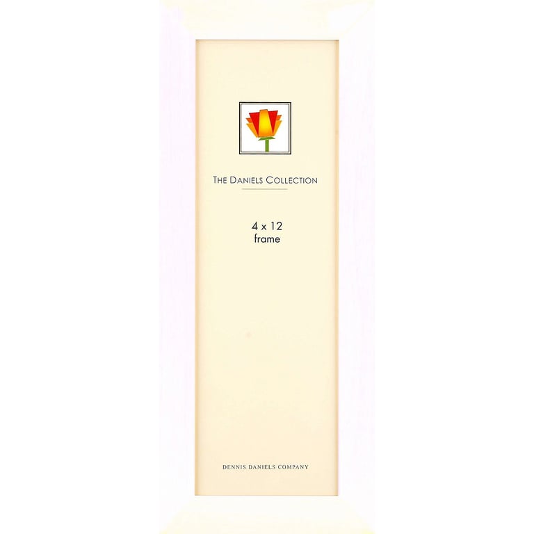 Main view Product Details Dennis Daniels® Bright-White bevelled wood classic 4x12 panoramic size by Dennis Daniels® — Daniels' beautifully crafted frame is simple and elegant.Inward bevel moulding adds depth to the presentation and draws the eye to the print. Bright furniture-finish white stain.Features finely fitting dual easel back for portrait or landscape tabletop display. Recessed wall mounts included for easy hanging. Glare resistant glass lens. Moulding width measures 1". Quality crafted by Dennis Daniels® of California. Bright-White bevelled wood classic 4x12 panoramic size by Dennis Daniels® Model #782680021628 List $19.50 You pay $16.95 In stock Ships next business day [?] Your Price Match is Active Your request for a price of $0.00 for a minimum quantity of has been accepted. You have [time] left to purchase this item for $0.00 instead of $16.95 each. Find a Lower Price? We BEAT All Authorized Retailers [?] FEATURESDisplays:4"x12"Material:Wood (full grain)Finish:WhiteOccasion:Business & office, Home decorating, Corporate giftsStyle:Classic, ContemporaryOrientation:BothBrand:Dennis Daniels®Display Type:Desktop or Wall Approx. Overall Dimensions:13 5/8"x5 5/8"x3/4" This item ships in its own box SHARE THIS ITEM Share on Facebook
