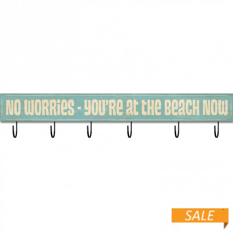 Product Details SIXTREES® NO WORRIES - YOU'RE AT THE BEACH Wood 42x5 Box Sign/Hanger — NO WORRIES - YOU'RE AT THE BEACH NOW Designed and produced by Sixtrees®, this adorable box sign will certainly be a conversation starter. Useful too with its 6 strong hooks for hanging towels and wet suits. Sixtrees® is a leader in unique décor for every home and work environment. SendAFrame stocks the entire Sixtrees® photo frame line as well as related home accessories like this special pool box sign. To view the entire collection Sixtrees Collection at SendAFrame. NO WORRIES - YOU'RE AT THE BEACH Wood 42x5 Box Sign/Hanger Model #783729214889 List $54.00 You pay $24.90 In stock Can be shipped today [?] Your Price Match is Active Your request for a price of $0.00 for a minimum quantity of has been accepted. You have [time] left to purchase this item for $0.00 instead of $24.90 each. Find a Lower Price? We BEAT All Authorized Retailers [?] Approx. Overall Dimensions:42"x5"x1/2" This item ships in its own box SHARE THIS ITEM Share on Facebook