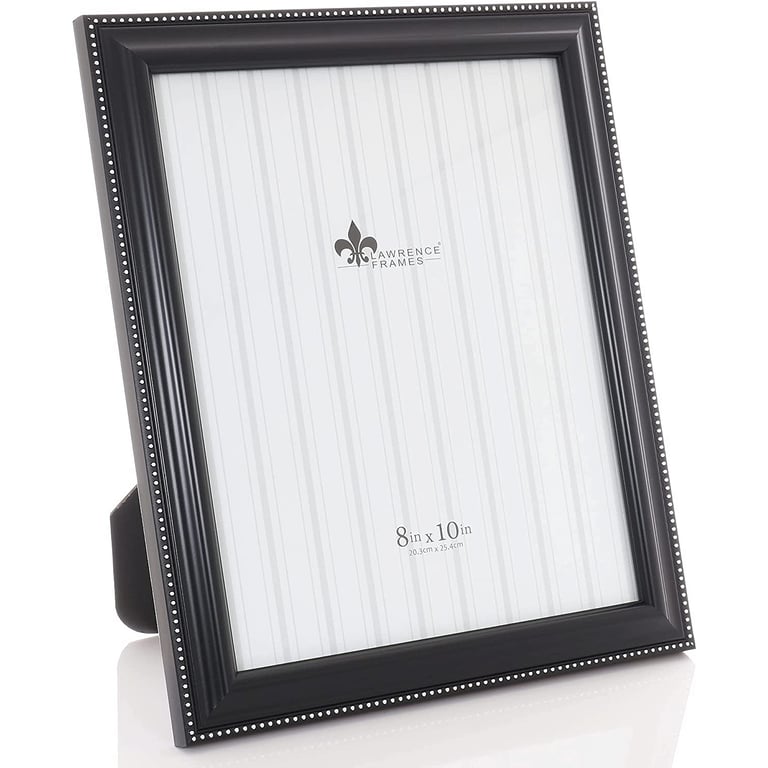 Main view Product Details Lawrence Frames® Black w/silver bead 8x10 frame — Elegant black frame with its silver bead trim enhances your photo's look.Matched hardwoods have a fine furniture finish.Dual easel backing is produced with acid free stock to insure a lifetime of enjoyment and protection. Wall mount included for easy hanging. Glare resistant glass lens. By Lawrence Frames® Black w/silver bead 8x10 frame Lawrence® HOLIDAY CELEBRATION Savings: Buy More / Save More * Add this item to your cart for the full details of this promotion. Conditions may apply. Model #751148053693 List $33.00 You pay $28.95 In stock Can be shipped today [?] Your Price Match is Active Your request for a price of $0.00 for a minimum quantity of has been accepted. You have [time] left to purchase this item for $0.00 instead of $28.95 each. Find a Lower Price? We BEAT All Authorized Retailers [?] FEATURESDisplays:8"x10"Material:Wood (full grain)Finish:Black, SilverOccasion:Business & office, Congratulations, Employee honors, Home decorating, Thank-Motivate-RewardStyle:ClassicOrientation:BothBrand:Lawrence Frames®Display Type:Desktop or Wall This item ships in its own box SHARE THIS ITEM Share on Facebook