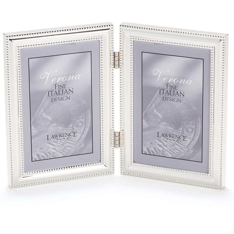 Main view Product Details Lawrence Frames® Polished silver Double Hinged 5x7 w/double caviar-bead trim — Our polished silverplate frame is a beautifully crafted desk piece with invisible seams and corners.Double 'caviar bead' trim border finishes the piece with excellent detail. Attractively backed with high quality navy velvet for wonderful desk appeal.Glare resistant glass lenses. Brass hinges for smooth closing.By Lawrence Frames®, renowned for crafting fine frames for generations. Polished silver Double Hinged 5x7 w/double caviar-bead trim Model #751148052672 List $56.00 You pay $47.95 In stock Can be shipped today [?] Your Price Match is Active Your request for a price of $0.00 for a minimum quantity of has been accepted. You have [time] left to purchase this item for $0.00 instead of $47.95 each. Find a Lower Price? We BEAT All Authorized Retailers [?] FEATURESDisplays:5"x7"Material:SilverplateFinish:SilverOccasion:Anniversary, Birthday, Graduation, Mother`s Day, Retirement, Thank-Motivate-Reward, Celebrating Travels, WeddingStyle:Antique, Classic, TraditionalOrientation:Vertical OnlyBrand:Lawrence Frames®Display Type:Desktop or Wall This item ships in its own box SHARE THIS ITEM Share on Facebook