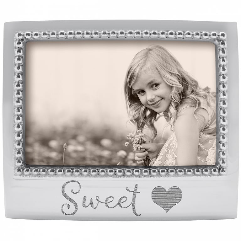 Main view Personalize Gifts for every occasion Create your own - see below to order Product Details Mariposa® The original SWEET {HEART} Statement frame crafted by Mariposa® — The SWEET {HEART} Statement frame for 6"x4" photos. People love the Mariposa casual, sculpted elegance — a strong, virtually carefree material. Their artisan handcrafted look in recycled aluminum is both pleasing to the eye and touch, as well as 100% ecologically sound. SendAFrame stocks the entire Mariposa® picture frame collection. To start - or add to your collection, click: Mariposa® Design Collection Note: Mariposa frames are hand engraved. Actual may differ slightly from photo. FeaturesNote: Mariposa frames are hand engraved. Actual may differ slightly from photo. The original SWEET {HEART} Statement frame crafted by Mariposa® Mariposa® FALL CELEBRATION Savings - Buy More / Save More * Add this item to your cart for the full details of this promotion. Conditions may apply. Model #13152615 $56.00 only 5 left, order soon. In stock Can be shipped today [?] Your Price Match is Active Your request for a price of $0.00 for a minimum quantity of has been accepted. You have [time] left to purchase this item for $0.00 instead of $56.00 each. Find a Lower Price? We BEAT All Authorized Retailers [?] FEATURESDisplays:4"x6"Material:AluminumFinish:SilverOccasion:Anniversary, Birthday, Birthday (child), Engagement, Romantic, Sweet 16, Valentine`s Day, Hanukkah, ChristmasStyle:Contemporary, Romantic, Santa Fe, Sophisticated, Words & whimsy, Eco-Friendly-Recycled, Modern, Expressions > ready madeOrientation:Horizontal OnlyBrand:Mariposa®Display Type:Desktop Only Approx. Overall Dimensions:6 3/4"x5 3/4" This item ships in its own box SHARE THIS ITEM Share on Facebook