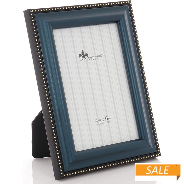 Back to results Scroll Items 10108 of 11170 Family Members 5"x7" - blue w/ gold bead $18.95 8"x10" - blue w/ gold bead $22.95 Main view Product Details Lawrence Frames® Sapphire-Blue w/Gold Beading 4x6 frame — Elegant blue frame with its gold bead trim enhances your photo's look.Matched hardwoods have a fine furniture finish.Dual easel backing is produced with acid free stock to insure a lifetime of enjoyment and protection. Wall mount included for easy hanging. Glare resistant glass lens.By Lawrence Frames®. Sapphire-Blue w/Gold Beading 4x6 frame Model #751148059855 List $24.50 You pay $11.90 In stock Can be shipped today [?] Your Price Match is Active Your request for a price of $0.00 for a minimum quantity of has been accepted. You have [time] left to purchase this item for $0.00 instead of $11.90 each. Find a Lower Price? We BEAT All Authorized Retailers [?] This item ships in its own box SHARE THIS ITEM Share on Facebook