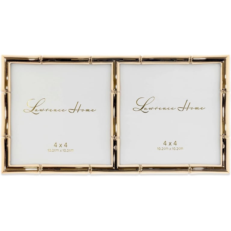 Main view Product Details Lawrence Frames® Goldplate BAMBOO 4x4 Double by Lawrence® — Gold plate double frame is nicely crafted with a classic bamboo style trim.Attractively backed for wonderful desk appeal.Easel back for portrait tabletop display. Wall mount for easy hanging. Glare resistant glass lens.By Lawrence®. Goldplate BAMBOO 4x4 Double by Lawrence® Model #751148092319 List $29.00 You pay $22.95 This item can be expected to ship by 12/02/2025. Order now by clicking ADD TO CART (below); you are only charged when we actually ship. Or, Click here to be automatically notified when it comes back in stock. Your Price Match is Active Your request for a price of $0.00 for a minimum quantity of has been accepted. You have [time] left to purchase this item for $0.00 instead of $22.95 each. Find a Lower Price? We BEAT All Authorized Retailers [?] This item ships in its own box SHARE THIS ITEM Share on Facebook