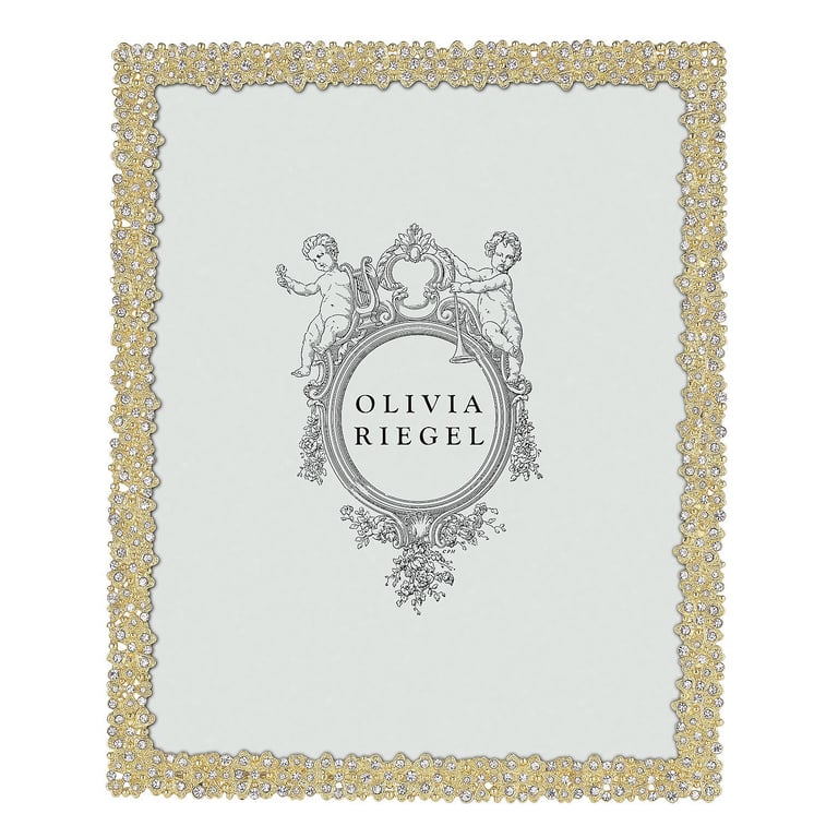 Main view Elegantly gift boxed (sample) Product Details Olivia Riegel GOLD EVIE Austrian Crystal 8x10 frame by Olivia Riegel® — Gold finished pewter with hand-set clear European crystals. Beveled glass. Elegant champagne hued moiré silk back, with easel designed for vertical or horizontal placement. Signature gift box. An original design frame from the Olivia Riegel® collection. SendAFrame proudly carries the entire Olivia Riegel® collection for your shopping convenience. GOLD EVIE Austrian Crystal 8x10 frame by Olivia Riegel® OLIVIA RIEGEL® HOLIDAY CELEBRATION SAVINGS - Buy More / Save More * Add this item to your cart for the full details of this promotion. Conditions may apply. Model #817655010403 $250.00 This item IS in stock and can be expected to ship 01/14/2026 Your Price Match is Active Your request for a price of $0.00 for a minimum quantity of has been accepted. You have [time] left to purchase this item for $0.00 instead of $250.00 each. Find a Lower Price? We BEAT All Authorized Retailers [?] FEATURESDisplays:8"x10"Material:Jewels/crystalFinish:GoldOccasion:Congratulations, Engagement, Good luck, Housewarming, Mother`s Day, Romantic, Sweet 16, Thank-Motivate-Reward, Valentine`s Day, WeddingStyle:Classic, Romantic, Ornate, TraditionalOrientation:BothBrand:Olivia RiegelDisplay Type:Desktop Only This item ships in its own box SHARE THIS ITEM Share on Facebook