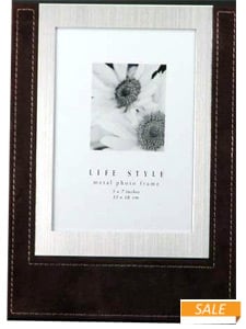 Product Details Sheridan Silversmiths Cocoa Brown Bonded Leather Portrait 5x7 frame — A unique way to display a favorite photo in brushed aluminum with a faux cocoa leather border. Glare resistant glass lens.Displays your 5"x7" print or photo. Overall size is 7¼"x10"Produced expressly for SendAFrame. Cocoa Brown Bonded Leather Portrait 5x7 frame Model #047105236774 List $14.50 You pay $6.90 In stock Your Price Match is Active Your request for a price of $0.00 for a minimum quantity of has been accepted. You have [time] left to purchase this item for $0.00 instead of $6.90 each. Find a Lower Price? We BEAT All Authorized Retailers [?] FEATURESDisplays:5"x7"Material:Leather (faux)Finish:BrownOccasion:Anniversary, Birthday, Congratulations, Engagement, Group Events + Parties, Good luck, Housewarming, Inspirational, Thank-Motivate-Reward, WeddingStyle:Classic, TraditionalOrientation:Vertical OnlyBrand:Sheridan SilversmithsDisplay Type:Desktop Only This item ships in its own box SHARE THIS ITEM Share on Facebook
