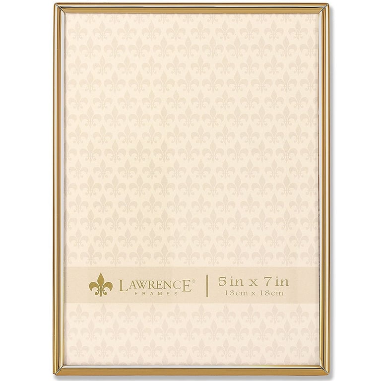 Main view Product Details Lawrence Frames® Polished SIMPLY GOLD 5x7 frame — Lawrence's polished goldplated frame is a nicely crafted frame with a "simple", minimal profile.Glare resistant glass lens. Quality fitted back with easel for tabletop easel display or wall mounts for easy hanging.By Lawrence®. Polished SIMPLY GOLD 5x7 frame Model #751148072250 List $22.50 You pay $16.95 In stock Ships next business day [?] Your Price Match is Active Your request for a price of $0.00 for a minimum quantity of has been accepted. You have [time] left to purchase this item for $0.00 instead of $16.95 each. Find a Lower Price? We BEAT All Authorized Retailers [?] This item ships in its own box SHARE THIS ITEM Share on Facebook