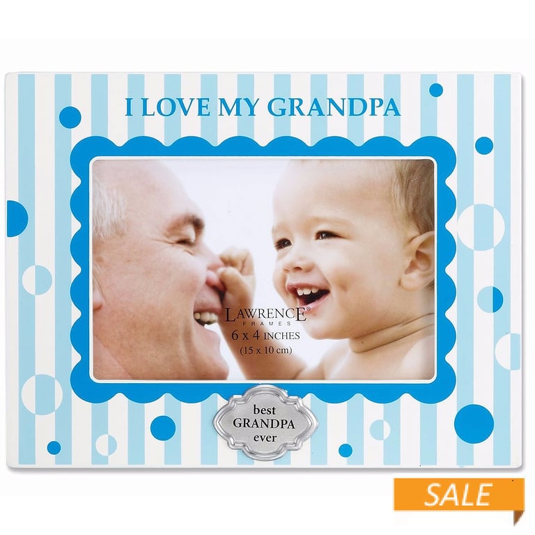 Product Details Lawrence Frames® I LOVE MY GRANDPA 6x4 frame — I LOVE MY GRANDPA BEST GRANDPA EVER Add a great photo and you have a gift that will make any grandfather smile! Constructed of wood composite and includes high quality black composite wood backing Holds a 6"x4" photo. Glass lens. Easel back for tabletop display.Produced by Lawrence Frames®. I LOVE MY GRANDPA 6x4 frame Model #751148066396 List $14.50 You pay $6.90 In stock Can be shipped today [?] Your Price Match is Active Your request for a price of $0.00 for a minimum quantity of has been accepted. You have [time] left to purchase this item for $0.00 instead of $6.90 each. Find a Lower Price? We BEAT All Authorized Retailers [?] FEATURESDisplays:4"x6"Material:Wood (mdf/engineered)Finish:Blue, WhiteOccasion:Christmas, Grandparent`s Day, New baby, Valentine`s DayStyle:Contemporary, Words & whimsy, Sentiments | ready madeOrientation:Horizontal OnlyBrand:Lawrence Frames® This item ships in its own box SHARE THIS ITEM Share on Facebook