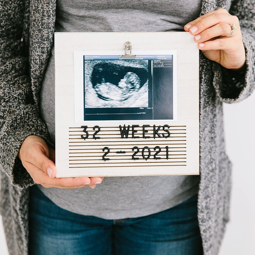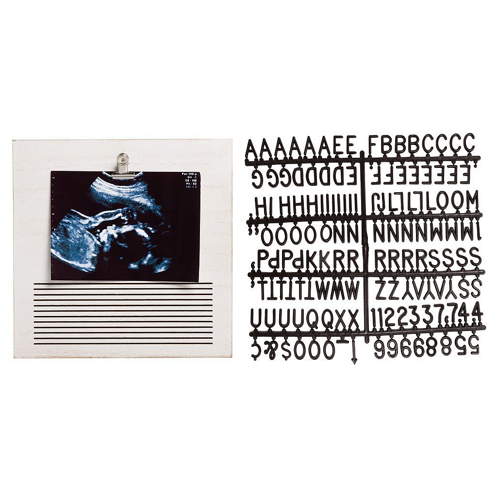 Main view Product Details Pearhead LETTERBOARD SONOGRAM Frame by Pearhead® — Trendy and fun, Pearhead’s letterboard photo frame is the perfect addition to your baby’s nursery Includes 180 black letters, numbers, and symbols to personalize Includes an easel to sit on any tabletop or triangle hanger to hang in any room in your home Use the silver clip to hang your sonogram picture Photo insert: 4” x 5” Rustic, whitewashed wooden frame Materials: wood frame with standard glass Product dimensions: 8” W x 8” H x .5” D Packaging dimensions: 8.11” W x 8.11” H x 1.25” D To view the complete collection, visit: Babyprints®. SendAFrame fully stocks, factory fresh, the entire Babyprints line for your shopping convenience. LETTERBOARD SONOGRAM Frame by Pearhead® Model #698904740322 List $16.50 You pay $7.90 In stock Your Price Match is Active Your request for a price of $0.00 for a minimum quantity of has been accepted. You have [time] left to purchase this item for $0.00 instead of $7.90 each. Find a Lower Price? We BEAT All Authorized Retailers [?] FEATURESDisplays:3"x4"Material:Wood (full grain)Finish:BlackOccasion:Baby shower, Baptism + Christening, New babyStyle:Child`s play, Words & whimsy, Sentiments | ready madeOrientation:Horizontal OnlyBrand:PearheadDisplay Type:Desktop or Wall This item ships in its own box SHARE THIS ITEM Share on Facebook