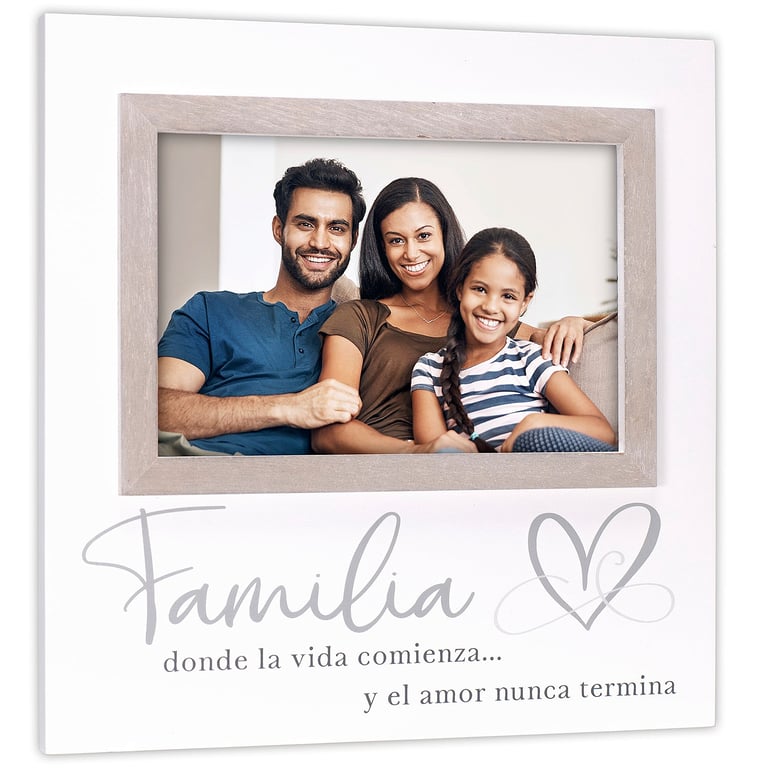 Product Details Malden Designs® FAMILIA... 4x6 Expressions Frame — FAMILIA donde la vida comienza ... y el amor nunca termina Crafted by Malden Designs® New England, maker of fine frames for generations. FAMILIA... 4x6 Expressions Frame Model #096287177252 List $18.00 You pay $11.95 In stock Can be shipped today [?] Your Price Match is Active Your request for a price of $0.00 for a minimum quantity of has been accepted. You have [time] left to purchase this item for $0.00 instead of $11.95 each. Find a Lower Price? We BEAT All Authorized Retailers [?] FEATURESDisplays:4"x6"Material:Wood (mdf/engineered)Finish:Brown(Light)/Tan, WhiteOccasion:Housewarming, InspirationalStyle:Words & whimsy, Sentiments | ready madeBrand:Malden Designs®Display Type:Desktop Only Approx. Overall Dimensions:8"x8"x3/4" This item ships in its own box SHARE THIS ITEM Share on Facebook