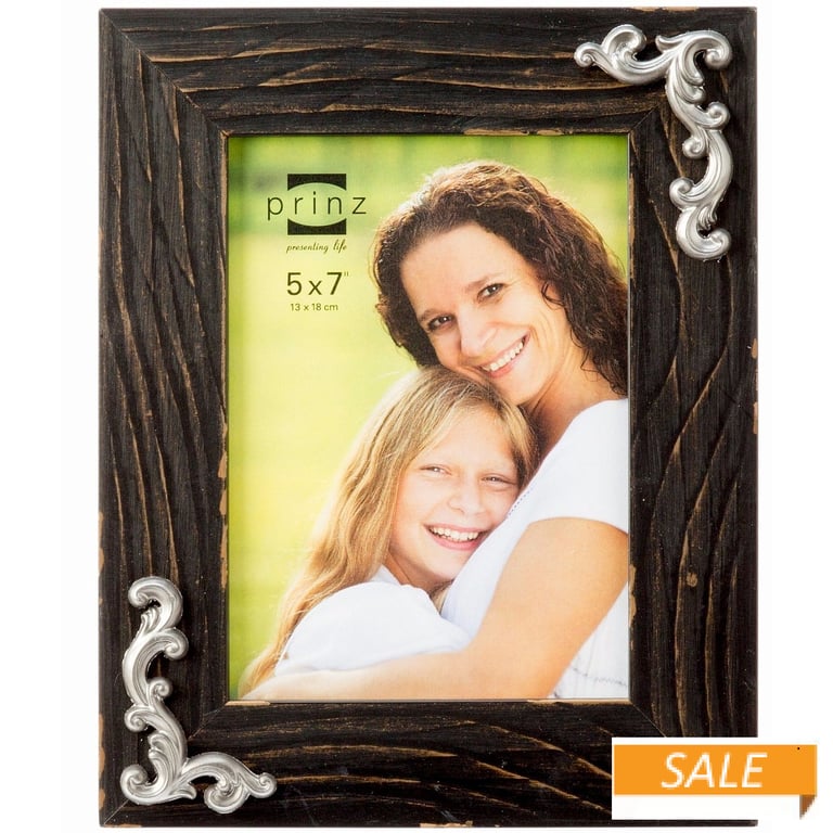 Back to results Scroll Items 10270 of 11381 Family Members 4"x6" - CARA Black $8.90 8"x10" - CARA Black $15.90 4"x6" - (triple) CARA Black $16.90 Product Details Prinz® frames & albums CARA Black stain 5x7 by Prinz® — CARA is a winner in any traditional home or setting. Wide full-grain wood moulding forms a striking complement to photos. A unique scroll accent in satin silver adorns the corners..Dual easel back for portrait or landscape use. Glare resistant glass lens.From Prinz® maker of fine picture frames for generations. CARA Black stain 5x7 by Prinz® Model #81812917 List $22.00 You pay $10.90 In stock Ships next business day [?] Your Price Match is Active Your request for a price of $0.00 for a minimum quantity of has been accepted. You have [time] left to purchase this item for $0.00 instead of $10.90 each. Find a Lower Price? We BEAT All Authorized Retailers [?] FEATURESDisplays:5"x7"Material:Wood (full grain)Finish:Black, SilverOccasion:Business & office, Corporate gifts, Home decorating, HousewarmingStyle:Antique, Classic, Early American, Rustic/Lodge, TraditionalOrientation:BothBrand:Prinz® frames & albums This item ships in its own box SHARE THIS ITEM Share on Facebook