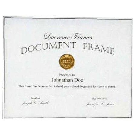 Back to results Scroll Items 2892 of 11088 Product Details Lawrence Frames® Thin White Line document frame by Lawrence Frames® — Classic clean white document frame with a contemporary, minimal moulding.Features glare resistant glass lens and hardboard backing. Convenient wall mount for easy hanging.Crafted by Lawrence Frames®. Thin White Line document frame by Lawrence Frames® Lawrence® HOLIDAY CELEBRATION Savings: Buy More / Save More * Add this item to your cart for the full details of this promotion. Conditions may apply. Model #751148061568 $8.00 only 4 left, order soon. In stock Can be shipped today [?] Your Price Match is Active Your request for a price of $0.00 for a minimum quantity of has been accepted. You have [time] left to purchase this item for $0.00 instead of $8.00 each. Find a Lower Price? We BEAT All Authorized Retailers [?] FEATURESDisplays:11"x14"Material:Acrylic | ResinFinish:WhiteOccasion:Business & office, Congratulations, Employee honors, GraduationStyle:ClassicOrientation:BothBrand:Lawrence Frames®Display Type:Wall Only This item ships in its own box SHARE THIS ITEM Share on Facebook