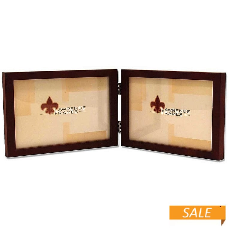 Main view full view Corner detail Product Details Lawrence Frames® SQUARE CORNER <u>horizontal</u> walnut hinged double by Lawrence® — A nicely crafted hinged double, you will enjoy the look it gives to your photo story.Now landscape and walnut stain finished.Frame edge is a very contemporary ½" all-around.Beautifully finished hardwood moulding with tapered seams. Glare resistant glass lenses. Brass hinges. Attractive black hardboard back has swivel tabs for easy and secure print loading.By Lawrence®. Click The Lawrence Frame collection to shop the entire line. SQUARE CORNER horizontal walnut hinged double by Lawrence® Model #751148055673 List $27.00 You pay $15.90 In stock Can be shipped today [?] Your Price Match is Active Your request for a price of $0.00 for a minimum quantity of has been accepted. You have [time] left to purchase this item for $0.00 instead of $15.90 each. Find a Lower Price? We BEAT All Authorized Retailers [?] This item ships in its own box SHARE THIS ITEM Share on Facebook