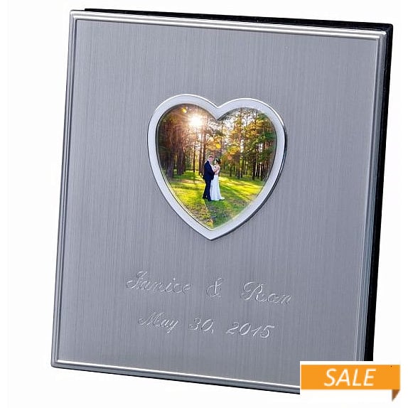 Main view Catalog View addl view Product Details Sheridan Silversmiths Satin Silver Album with Heart Cover Frame holds 120 4x6 photos — Our personal silverplate album for your 4"x6" photos is terrific with its heart-shaped window cover and ability to be nicely engraved.Displays 120 photos in its 30 acid-free slip-in pages - 2 on a page / back and front. Plus - Cover window frame displays your favorite 3"x3" photo. Terrific as a portable brag book. Engraving is optional. Produced expressly for SendAFrame. Satin Silver Album with Heart Cover Frame holds 120 4x6 photos Model #047105244380 List $22.50 You pay $12.90 In stock Ships next business day [?] Your Price Match is Active Your request for a price of $0.00 for a minimum quantity of has been accepted. You have [time] left to purchase this item for $0.00 instead of $12.90 each. Find a Lower Price? We BEAT All Authorized Retailers [?] Approx. Overall Dimensions:7 3/4"x8 3/4"x1 1/2" SHARE THIS ITEM Share on Facebook