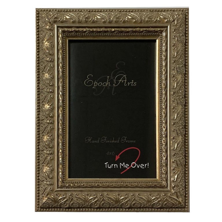 Main view Reverse (sample) Instructions Product Details Epoch Art™ Retro PAPILLON SILVER 4x6 by Epoch Arts® — PAPILLON SILVER is a fantastic reproduction of a turn-of-the-century (20th) frame. Beautifully treated hardwood, finished in a carved silver-leaf stain style.You will love the back of the piece. Patented back makes the frame adjustable between vertical and horizontal with, literally, a "snap". Expertly crafted by Epoch Arts®. PAPILLON SILVER 4x6 by Epoch Arts® Model #816558006025 $24.50 only 2 left, order soon. In stock Ships next business day [?] Your Price Match is Active Your request for a price of $0.00 for a minimum quantity of has been accepted. You have [time] left to purchase this item for $0.00 instead of $24.50 each. Find a Lower Price? We BEAT All Authorized Retailers [?] FEATURESDisplays:4"x6"Material:Wood (full grain)Finish:SilverOccasion:Home decoratingStyle:Antique, Rustic/Lodge, Traditional, Vintage Victorian, Ornate, SophisticatedOrientation:BothBrand:Epoch Art™ RetroDisplay Type:Desktop or Wall This item ships in its own box SHARE THIS ITEM Share on Facebook