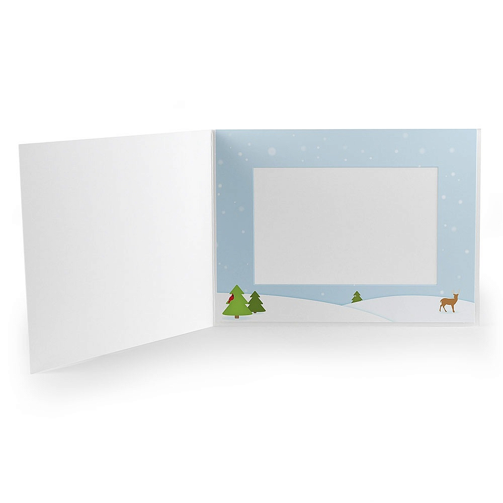 Main view Sizing Product Details Collectors Gallery WINTER FOREST Holiday Photo Folder for 7x5 (landscape) prints — Use for breakfast with santa or mall santa photos, school events, holiday promotions and other special events. WINTER FOREST photo folders are the perfect accompaniment to event photography with a holiday theme. Optional personalization allows you to add your business or event name, logo, date and more. Often called cardboard photo folders, our photo event folders are made from a smooth lightweight cardstock paper. Features & Information Overall size measures 6" x 8 1/8" (when closed) Picture opening measures 4 1/2" x 6 1/2" (for 5" x 7" photos) Inside border images shown are for 4" x 6" folders, 5" x 7" inside window border is slightly narrower Lightweight smooth finish paper Printed design on front cover, back cover and inside window border Holds one photo on the inside Window border glued along top edge, bottom edge open Available for vertical or horizontal prints Shipped flat, not folded Envelopes available separately Individually priced; minimum 50. Made in the U.S.A. WINTER FOREST Holiday Photo Folder for 7x5 (landscape) prints Model #021352133079 $1.75 This item IS in stock and can be expected to ship 01/14/2026 Your Price Match is Active Your request for a price of $0.00 for a minimum quantity of has been accepted. You have [time] left to purchase this item for $0.00 instead of $1.75 each. Find a Lower Price? We BEAT All Authorized Retailers [?] FEATURESDisplays:5"x7"Material:Card-stockFinish:Blue, Green, WhiteOccasion:Group Events + Parties, ChristmasStyle:Contemporary, Words & whimsy, Minimal, TraditionalOrientation:Horizontal OnlyDisplay Type:not applicable n/a Approx. Overall Dimensions:8 1/8"x6" SHARE THIS ITEM Share on Facebook