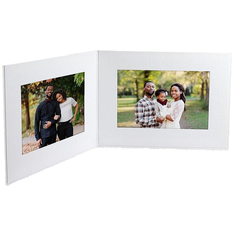 Main view Sizing Printed cover samples BEFORE/AFTER (sample/portrait) Product Details Collectors Gallery White cardboard double photomount folder 6x4 frame w/plain border (sold in 25s) — Frame your photos and prints like a professional studio photographer - at a fraction of the price !Portrait Folders are suitable for a variety of photographs including: Party photos, Senior and School portraits, Family portraits, Engagement and Wedding portraits, Cruise and Resort photography.Terrific look and feel with white linen weave finish and deckled edges.Photo easily slides in from the side for convenient event assembly with your prints.Frames display two 6" x 4" landscape prints or photos.See Suggested Accessories below for matching envelopes (not required). White cardboard double photomount folder 6x4 frame w/plain border (sold in 25s) Model #021352644124 List $27.50 You pay $21.25 ( set of 25 / $0.85 ea ) This item IS in stock and can be expected to ship 11/25/2025 Your Price Match is Active Your request for a price of $0.00 for a minimum quantity of has been accepted. You have [time] left to purchase this item for $0.00 instead of $0.85 each. Find a Lower Price? We BEAT All Authorized Retailers [?] Approx. Overall Dimensions:8 3/8"x6 1/8" SHARE THIS ITEM Share on Facebook