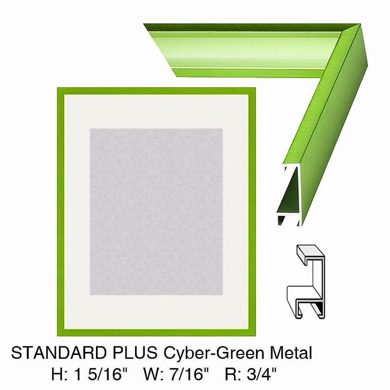 Custom-Cut™ STANDARD PLUS Cyber-Green Metal frame H:1-5/16 W:7/16 R:3/4