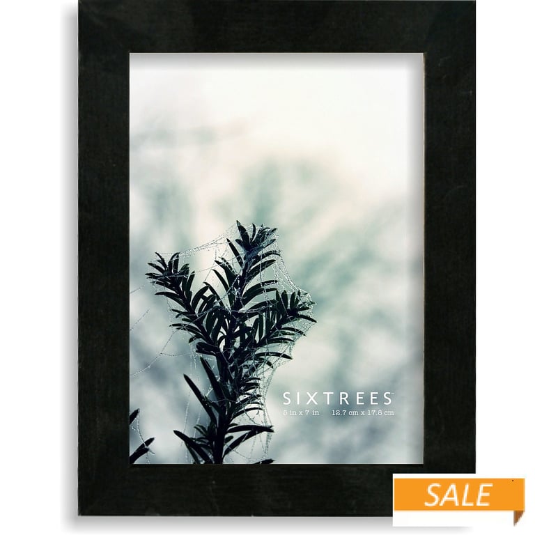 Product Details SIXTREES® BLACK/SILVER 5x7 Frame by Sixtrees® — Distressed natural-stained wood is a great way to style a casual room with your photo. BLACK with Silver Inner trim Tabletop display or can be hung on a wall with installed hangers Holds a 5"x7" photo, vertical or horizontal Glare resistant glass lens. Crafted by Sixtrees®. BLACK/SILVER 5x7 Frame by Sixtrees® Model #783729278379 List $19.50 You pay $9.69 This item IS in stock and can be expected to ship 01/23/2026 In stock Your Price Match is Active Your request for a price of $0.00 for a minimum quantity of has been accepted. You have [time] left to purchase this item for $0.00 instead of $9.69 each. Find a Lower Price? We BEAT All Authorized Retailers [?] FEATURESDisplays:5"x7"Material:Wood (full grain)Finish:Black, Gray/Charcoal, SilverOccasion:Corporate gifts, Home decoratingStyle:Contemporary, Distressed - Weathered, Rustic/Lodge, Nautical & ShoreOrientation:BothBrand:SIXTREES®Display Type:Desktop or Wall This item ships in its own box SHARE THIS ITEM Share on Facebook