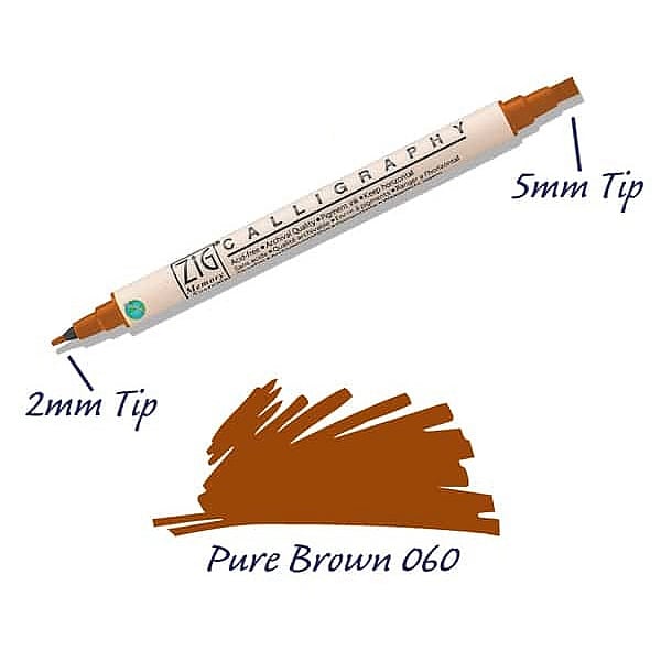 Product Details Itoya Studio The Memory System Calligraphy Pen - PURE BROWN - by ZIG Kuretake® (sold in 6s) — ZIG CALLIGRAPHY pens are a water-based pigment, dual tipped pen, great for beginners. Square tips are ideal for both right and left handed users. Easy to use for beginner to professional. Pen has 2 tips: 2.0mm and 5.0mm Excellent marker for calligraphy and drawings Acid-free and photo safe Odorless By Kuretake ZIG - famous for calligraphy markers By ZIG Kuretake® NOTE: Item is individually priced; sold in 6s to save you shipping expense (counts as 1 unit) The Memory System Calligraphy Pen - PURE BROWN - by ZIG Kuretake® (sold in 6s) Model #847340002475 List $27.00 You pay $20.94 ( set of 6 / $3.49 ea ) This item can be expected to ship by 12/09/2025. Order now by clicking ADD TO CART (below); you are only charged when we actually ship. Or, Click here to be automatically notified when it comes back in stock. Your Price Match is Active Your request for a price of $0.00 for a minimum quantity of has been accepted. You have [time] left to purchase this item for $0.00 instead of $3.49 each. Find a Lower Price? We BEAT All Authorized Retailers [?] This item ships in its own box SHARE THIS ITEM Share on Facebook