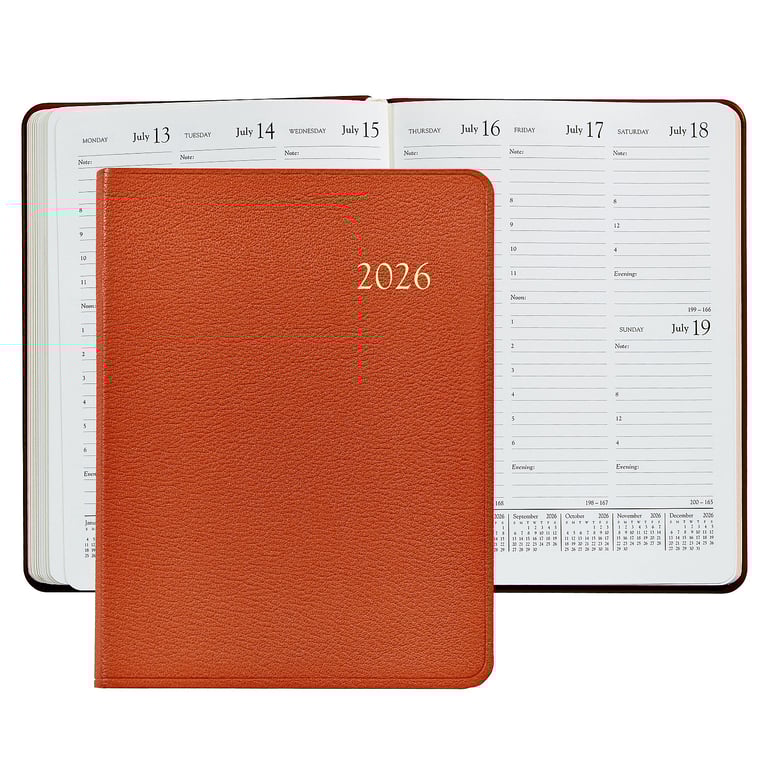 Graphic Image® 2026 Goatskin Leather 9in ORANGE Desk Diary by Graphic Image™ —